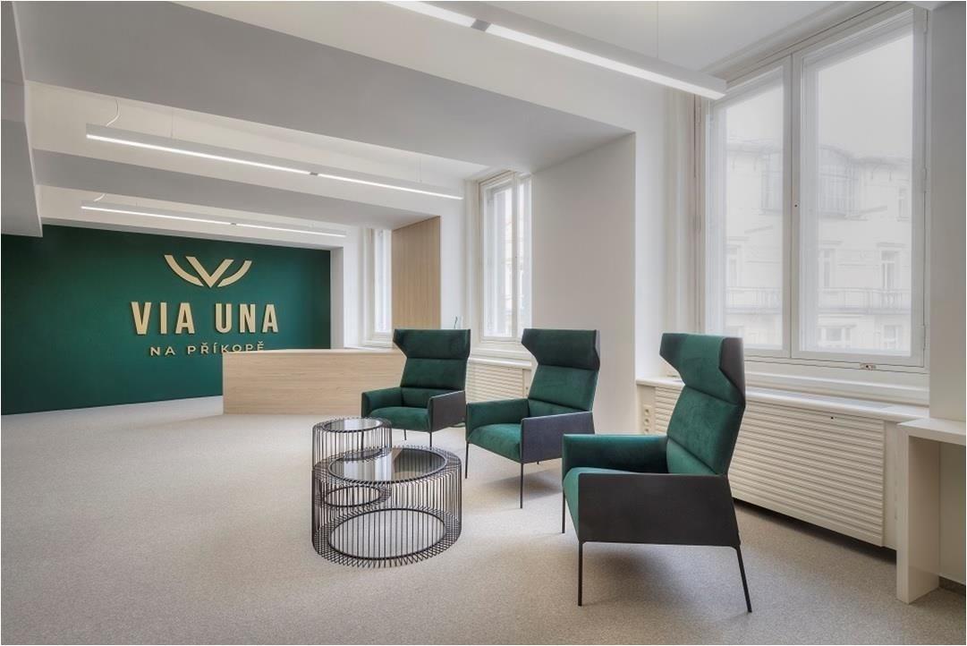 Projekt VIA UNA kombinuje noblesní atmosféru budovy se všemi nároky, které jsou kladeny na nejmodernější kancelářské a obchodní prostory. Cílem modernizace budovy je nejen zaujmout moderním designem a použitím nových materiálů, ale také nabídnout řešení pro stále se měnící pracovní návyky a požadavky tím, že mimo jiné zajistí flexibilní dělení místností a nové vstupy do budovy.