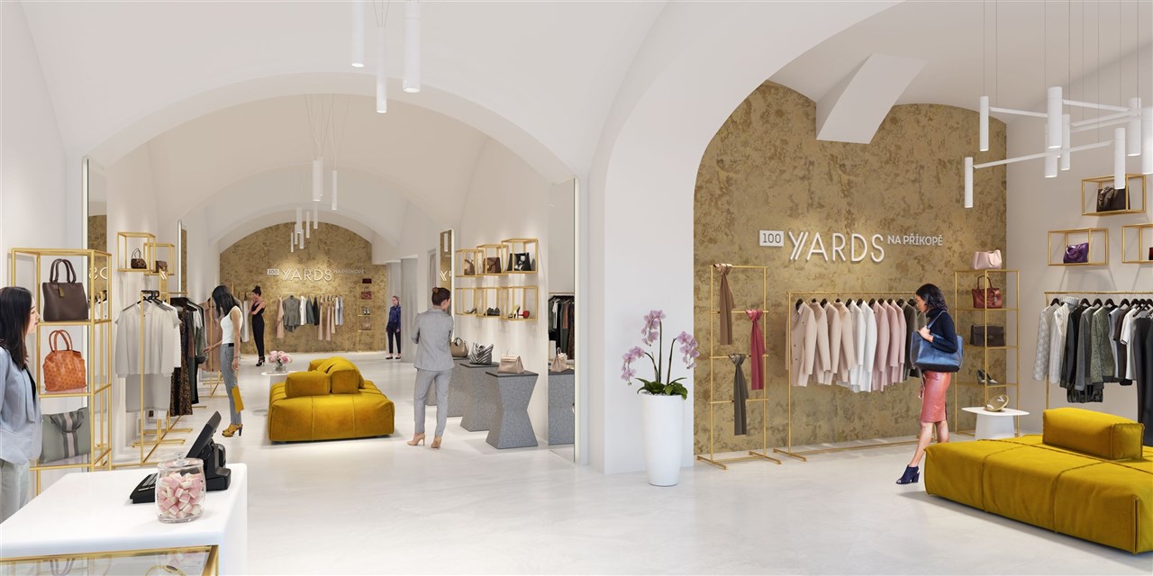 Budova 100 YARDS se nachází na jedné z nejvýznamnějších hlavních ulic Prahy, Na Příkopě. V budově je přes 3.800 m2 kanceláří, 3.000 m2 teras a 1.000 m2 obchodních prostor. Hlavní světové značky se zde prezentují vlajkovými obchody.