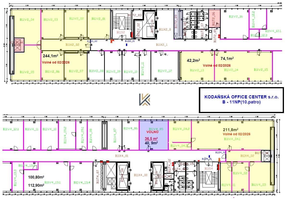 Pronájem části patra o velikosti 211 m2 (v plánku žlutě vyznačená část)
