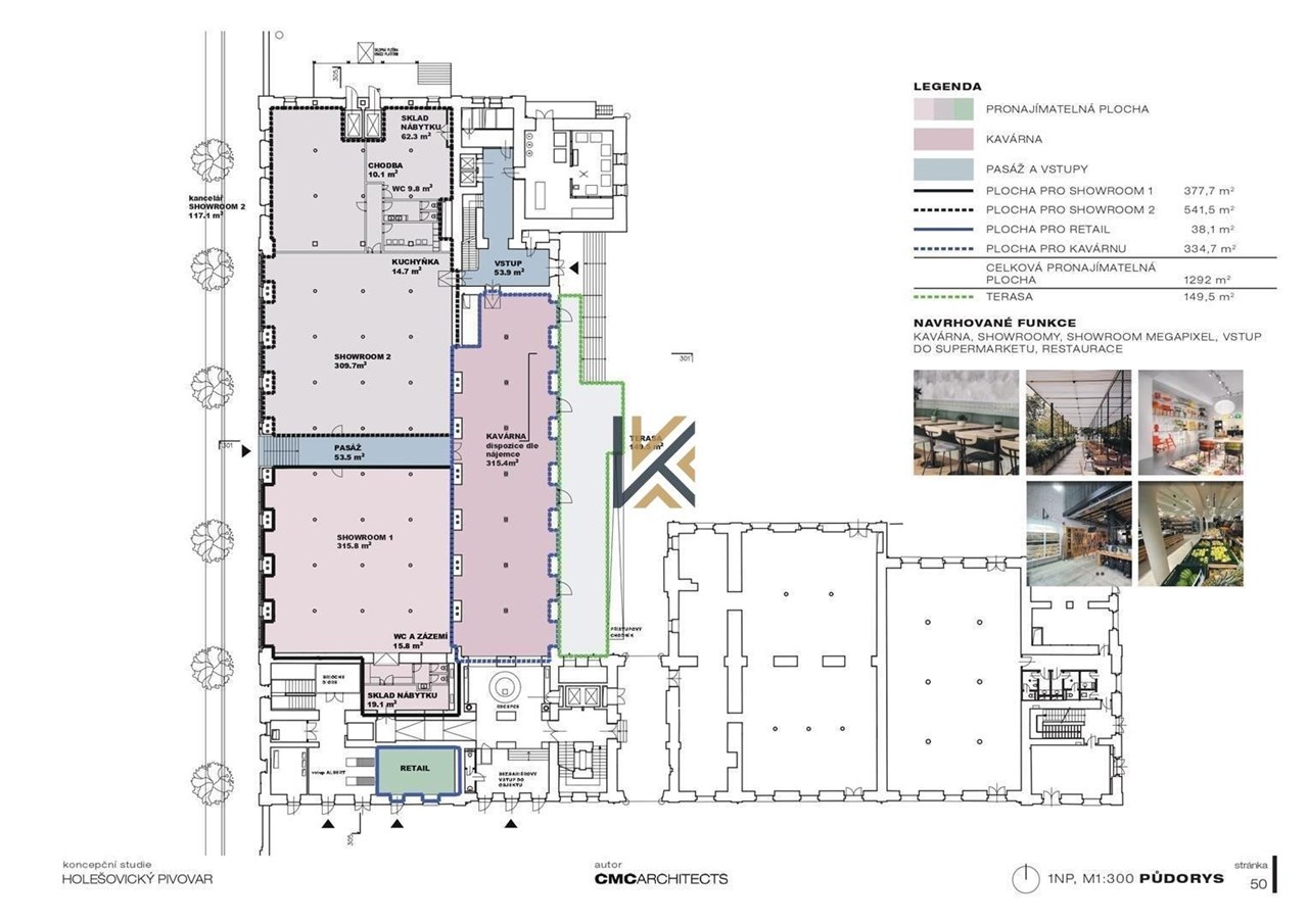 Obchodní prostory o výměře 500-1 000 m2 v přízemí.