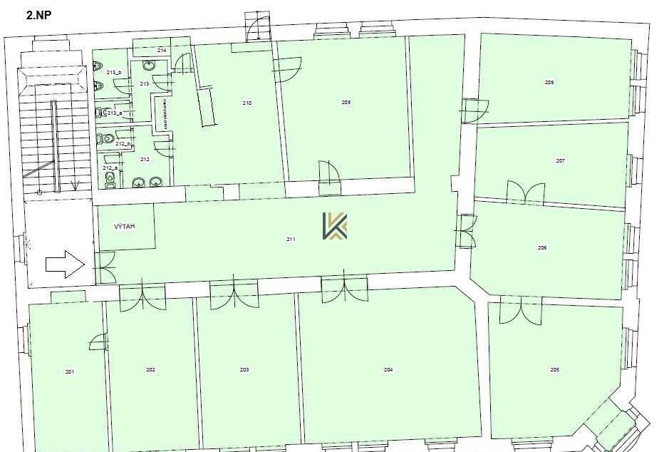 Pronájem kancelářských prostor 325 m2, v 1. patře secesní vily. Volné od 1.4.2026.