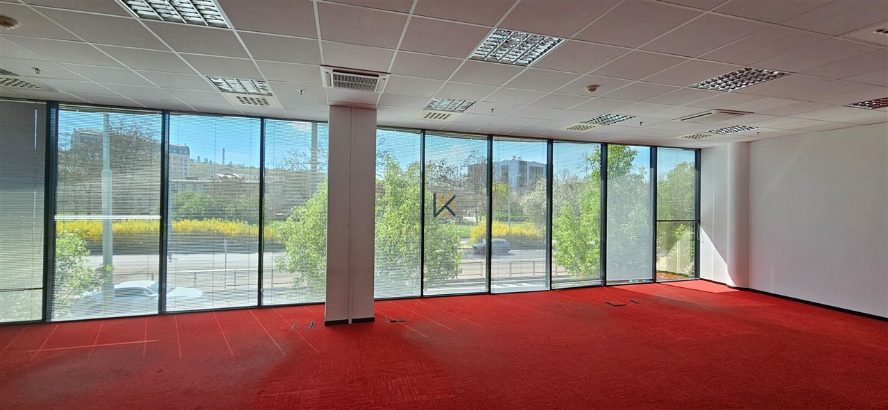 Samostatná kancelářská/obchodní jednotka o výměře 1 642 m2 v 1. patře. Lze případně dělit na 748m2 a 890m2. Vlastní terasa 111 m2. Vlastní vstup z ulice. K dispozici 15 parkovacích míst. Možnost menšího skladu.