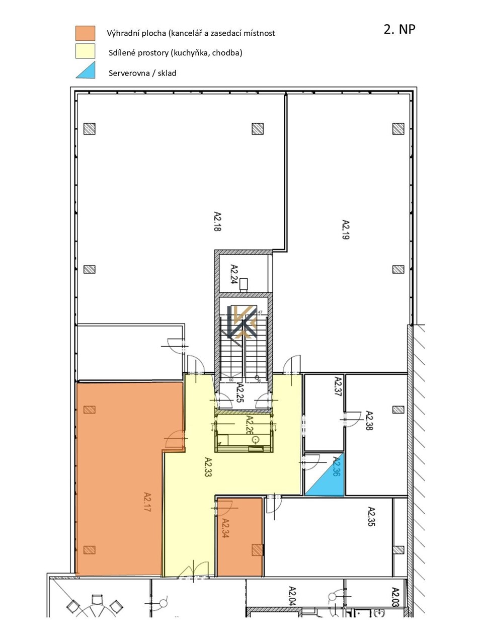 Kanceláře 85 m2 v 1. patře budovy.