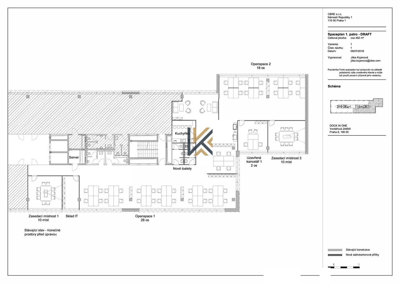 Jedná se o moderní kanceláře umístěné v 1. patře s výhledem o výměře 517 m2.