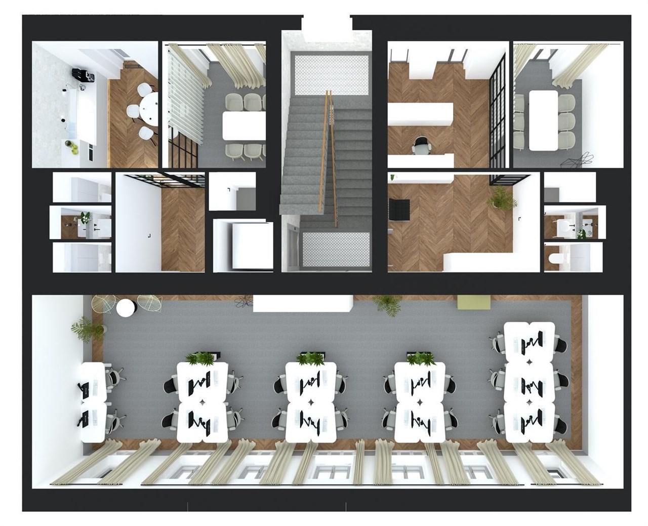 | Kancelářské prostory | 3. patro | 585 m2 | 199 140 Kč / měs | 76 050 Kč / měs. + DPH | Volný |