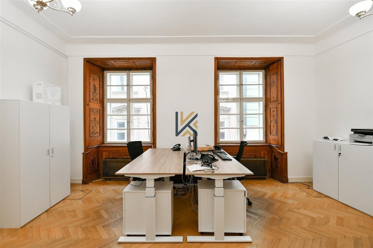 Kanceláře o výměře 102 m2 v 1. patře budovy. Nabízí : otvíratelná okna, zdvojená podlaha, kuchyňka a toaleta v rámci kanceláří. Recepce v budově a ostraha 24 hod.K dispozici ihned