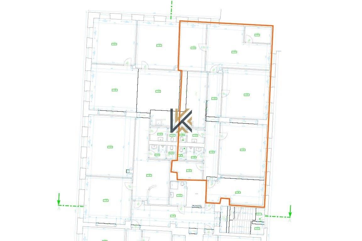 Prostory se nacházejí ve 3. nadzemním podlaží pětipodlažní kancelářské budovy. Prostor je v současné době rozdělen příčkami na samostatné kanceláře a jídelní místnost s kuchyňskou linkou. Kuchyně je vybavená lednicí, mikrovlnou troubou a myčkou. Součástí prostoru jsou oddělené dámské a pánské toalety a příruční sklad.Prostor je variabilní, lze upravit dle dispozičních potřeb nájemce.