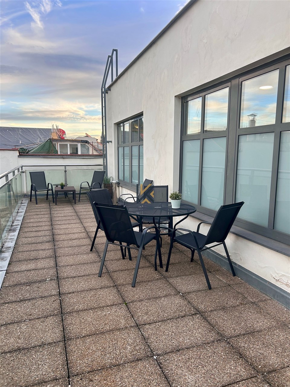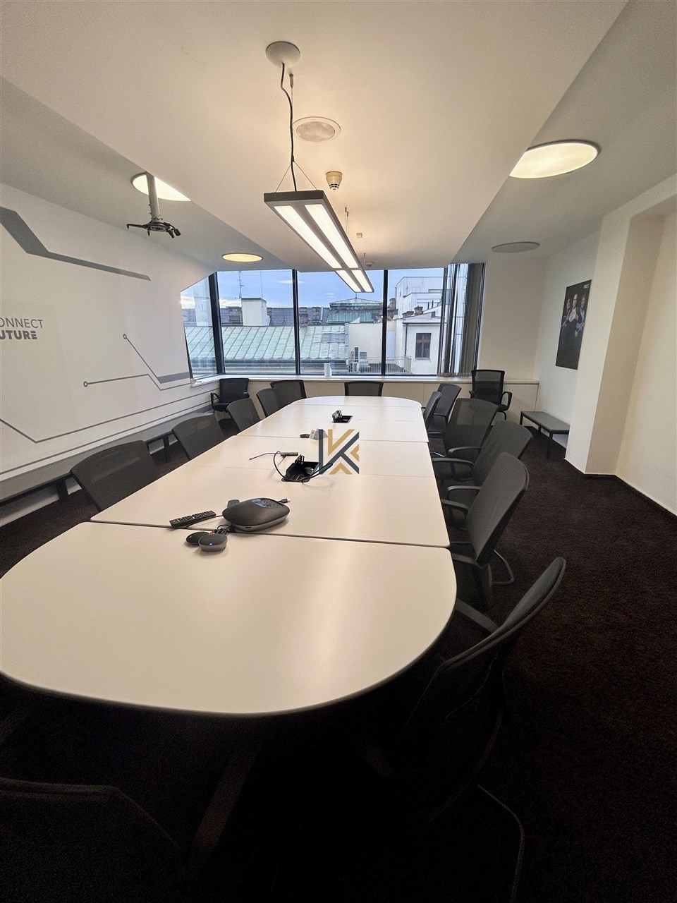 Moderní kancelářská jednotka 977 m2 v 6. patře budovy s vlastní privátní terasou k dispozici až 15 parkovacích míst.