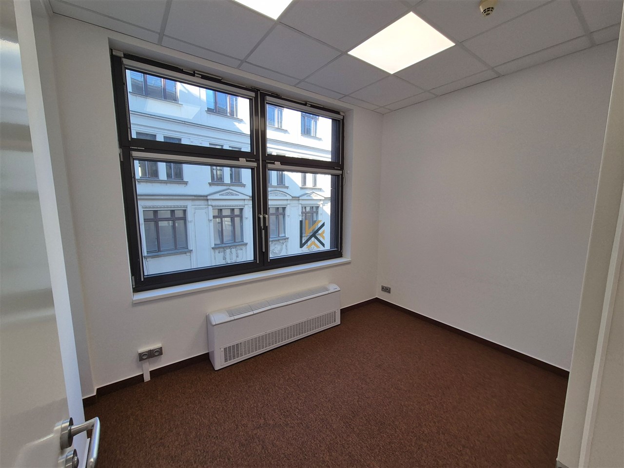 Pronájem kanceláří 63 m2 se samostatnou kuchyňkou a toaletou. Volné od 1.2.2026. Prostory jsou ve 3. patře, vstup zadním vchodem. Může být i neplátce DPH.