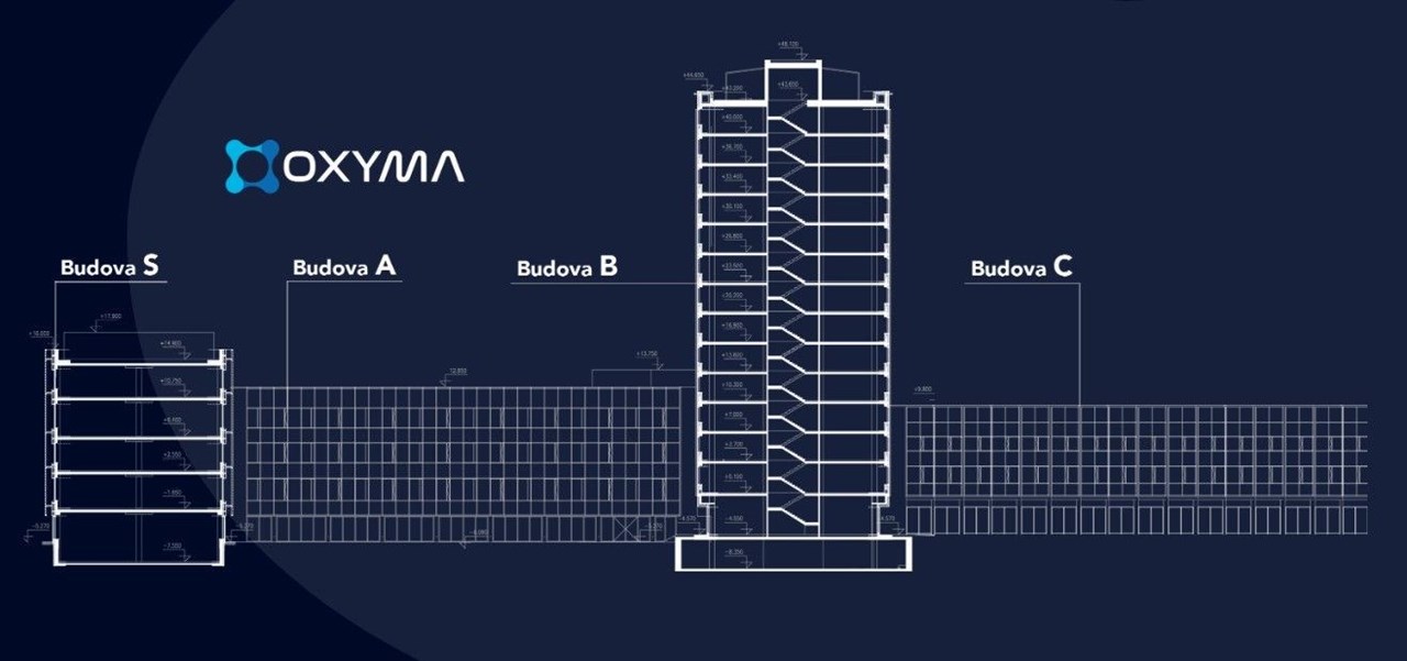 Budova se nachází v bývalé průmyslové oblasti v pražských Malešicích. Nabídne přes 14 000 m2 moderních kanceláří a prostor pro lehkou výrobu nebo sklady, restauraci a kavárnu pro firemní stravování a 200 parkovacích míst včetně míst pro elektromobily. Skvělé napojení na pražský okruh, železnici a městskou hromadnou dopravu. Budova dále nabídne otevřené a flexibilní prostory, smart recepci s 24hodinovým provozem a virtuální recepční a 1000 m2 zelené střesní terasy. Svět okolo nás se nepřetržitě mění a s ním i nároky na pracovní prostředí. Budova OXYMA je odpovědí na tuto evoluci. Je promyšleným spojením udržitelného životního stylu a technologického pokroku. Je místem, kde se moderní inovace prolínají s tradičním designem.