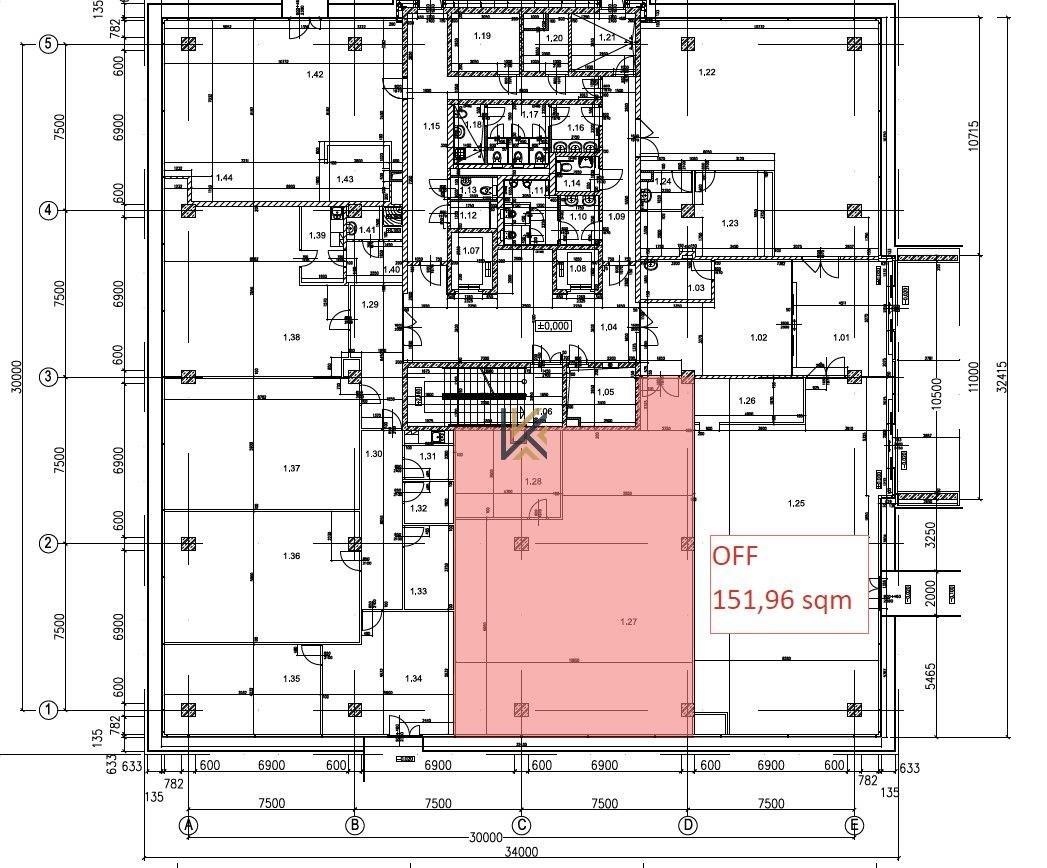 Pronájem obchodních prostor 152 m2 v přízemí budovy.