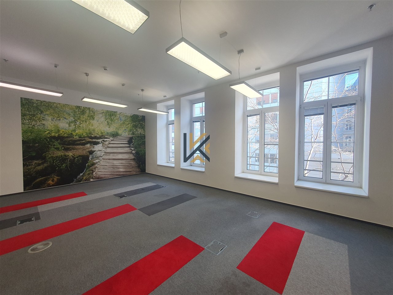 Obchodní jednotka jednotka s přímým vstupem z ulice + druhý je v rámci atrium budovy. Prostory lze rozdělit na cca. 300 m² a 211 m². Nájemci musí být plátci DPH, smlouva min. na 3 roky. Kontribuce na úpravy prostor.