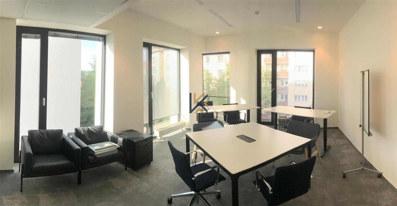 Jedná se o samostatný kancelářský prostor umístěný ve druhém patře budovy o velikosti 293 m2. Kancelářský prostor je momentálně řešený částečně jako open space a částečně jako uzavřené menší kanceláře, využívané i jako zasedací místnosti. Případně je samozřejmě možné upravit kanceláře dle přání nájemníka.