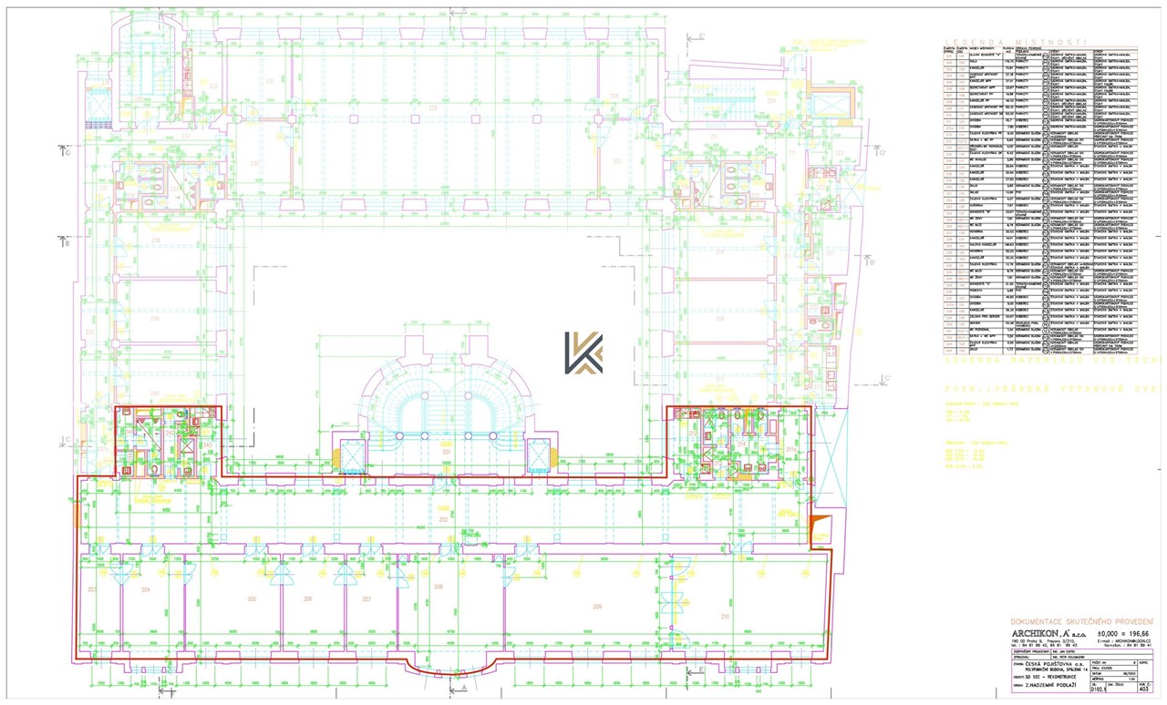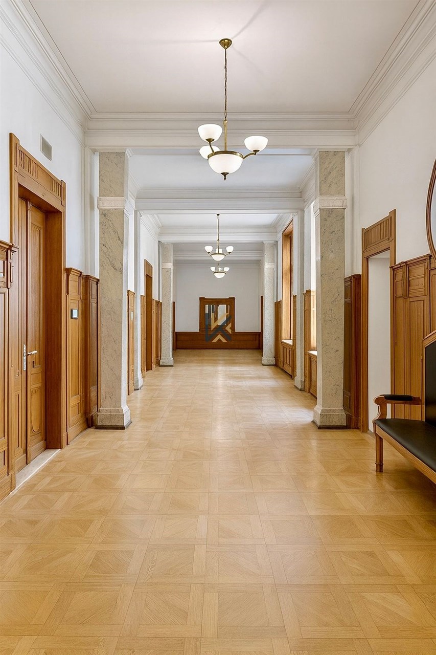 Secesní jednotka o velikosti 538 m2 orientace do ulice Spálená. 8 samostatných kanceláří 2 kuchyňky, WC a Sprcha vysoké stropy
