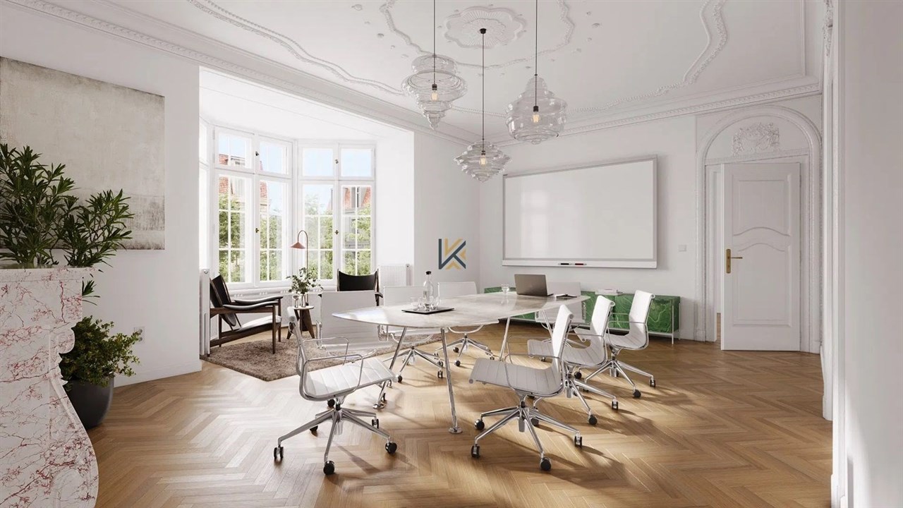 Samostatně stojící vila s 800m2 klimatizovaných kancelářských prostor s recepcí, konferenčními místnostmi, kuchyňkami a sociálním zázemím na každém patře.