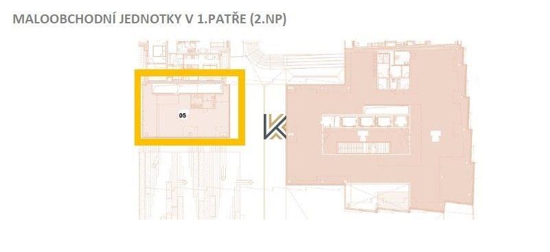 Pronájem obchodního prostoru 105 m2. K dispozici od 4Q/2027. Na plánku č. 05, 1.patro.