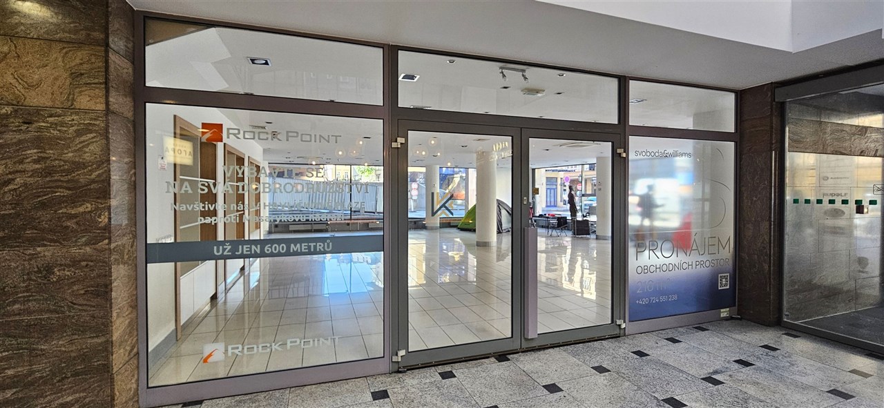Obchodní jednotka o výměře 435 m2 na rohu Rybné ulice. Prostory v přízemí 219m2 (18 EUR/m2) + 216m2 (8 EUR).Vstup z pasáže. Pasáž objektu je situována mezi Rybnou ulicí a pasáží Kotva, je přístupná veřejnosti celoročně v pracovních dnech v době od 07:00 hod do 22:00 hod, v sobotu v době od 09:00 do 22:00 a v neděli a ve dnech státního svátku v době od 09:00 do 22:00. Vstup do objektu a pronajatých prostor je umožněn všem držitelům osobní bezkontaktní karty bez časového omezení.