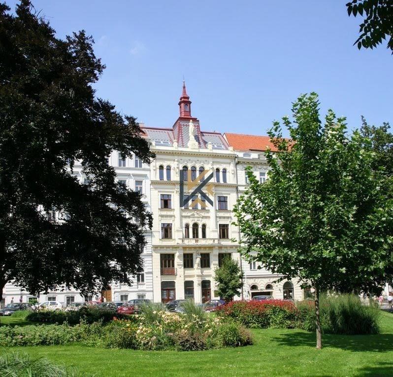Budova nabízí v každém patře budovy kancelářské prostory o velikosti 150 m2. Kanceláře jsou s krásným výhledem do parku a na Náměstí Kinských. Kanceláře disponují vlastním sociálním zázemím a kuchyňkou.