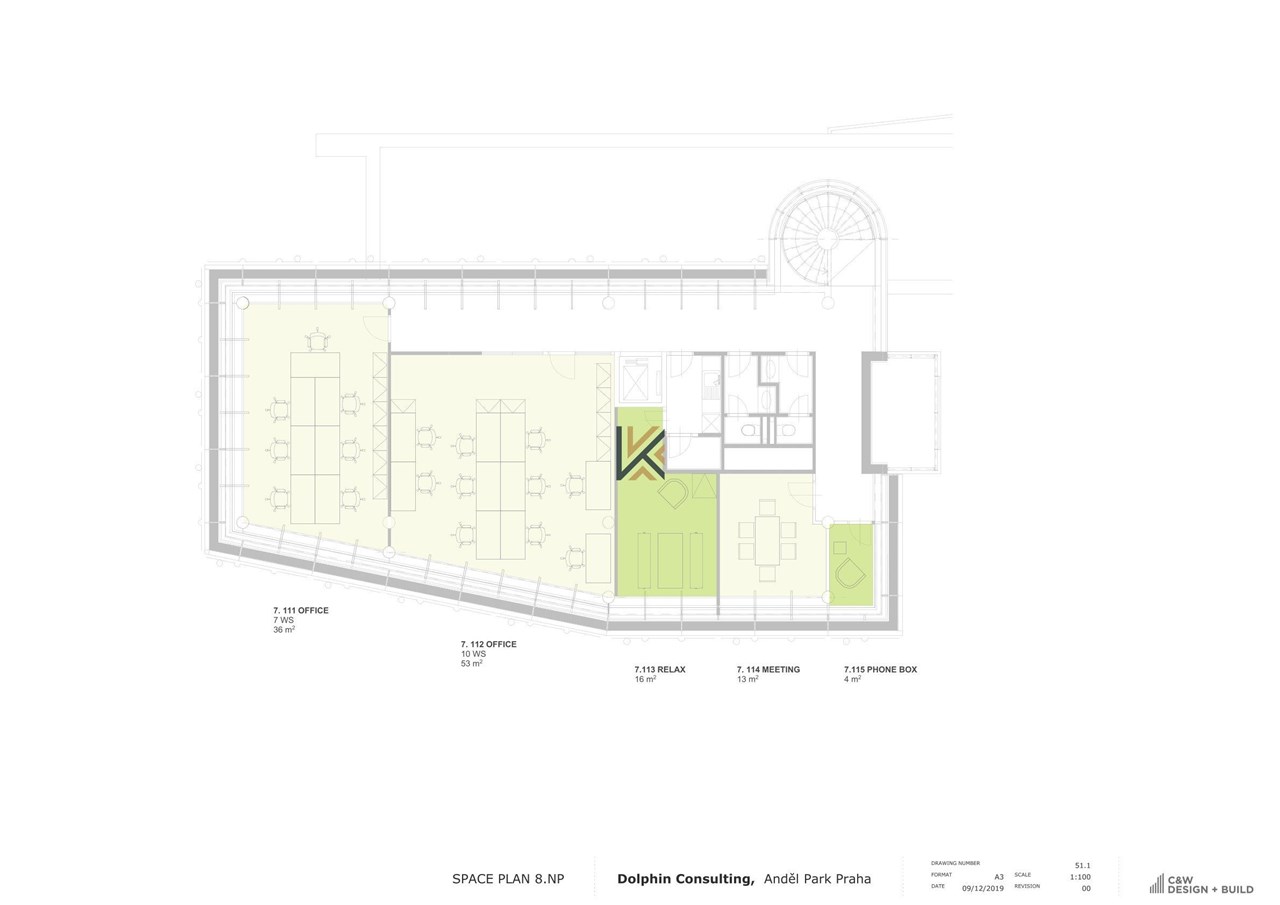 Moderní kancelářské prostory v posledním patře s nádherným výhledem. K dispozici sdílená terasa.