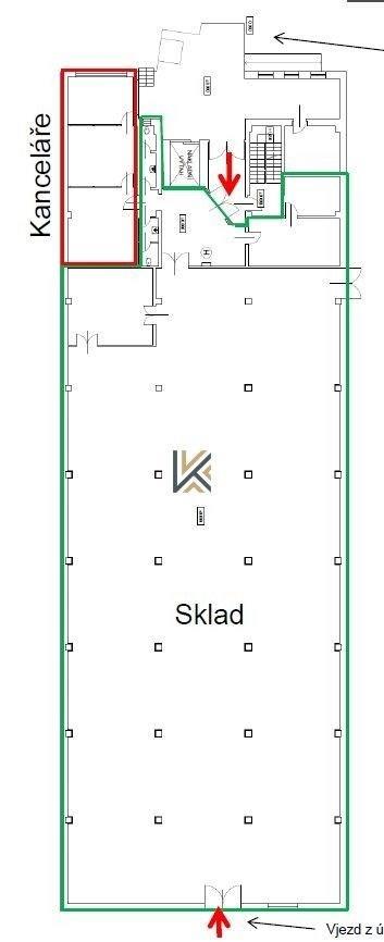 Pronájem vytápěné haly v přízemí. 863 m2 skladových prostor a 63 m2 kanceláří. Flexibilní otevřený prostor, hydraulická rampa.